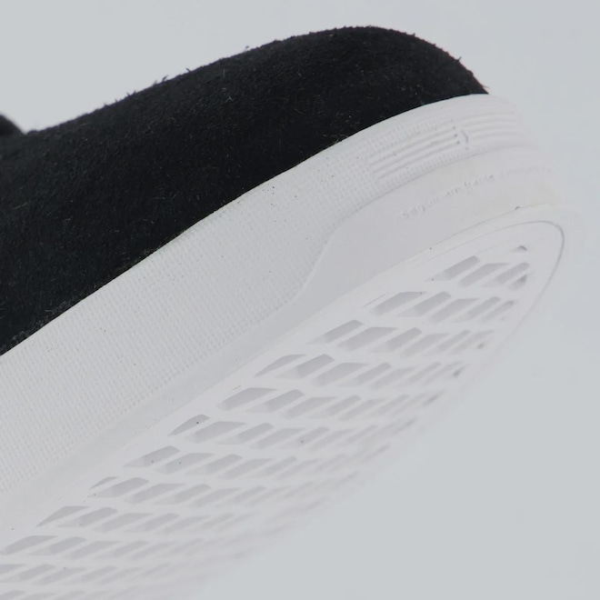 Granular A+: Solado produzido com pequenos grânulos de borracha exatamente na quantidade necessária, consumindo menos energia e praticamente zerando o resíduo de produção. Composta por materiais nobres, mesclando borracha natural da seringueira e borracha sintética, para um produto de alta performance, flexibilidade e aderência ao solo.Composição cabedal (parte superior): Camurça com partes em Téxtil e Sintético