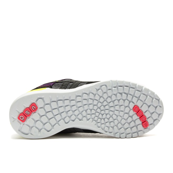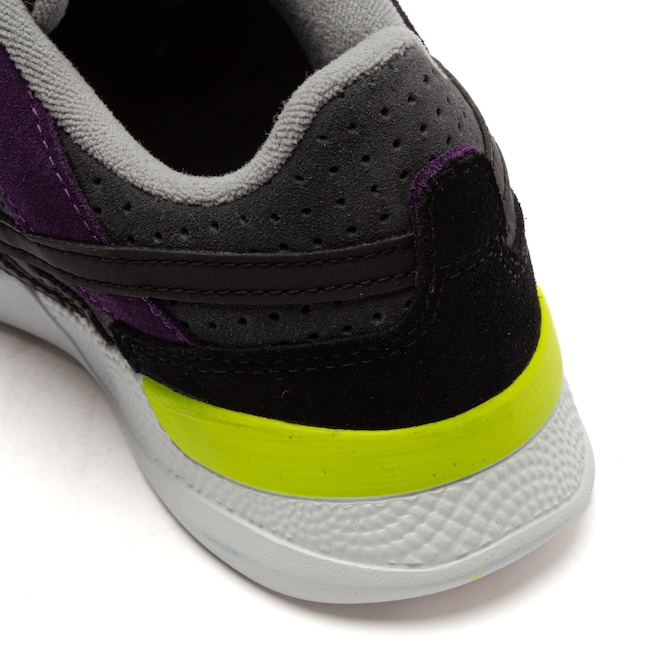 O solado apresenta detalhes emborrachados em locais estratégicos para melhor aderência em zonas de maior impacto.