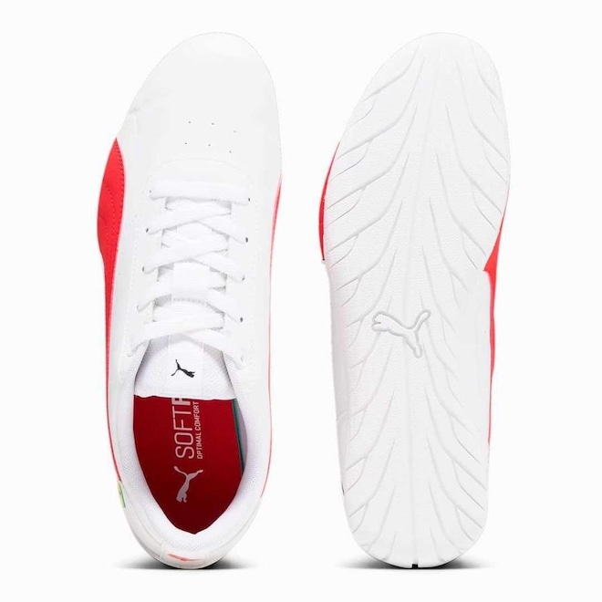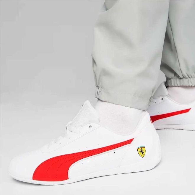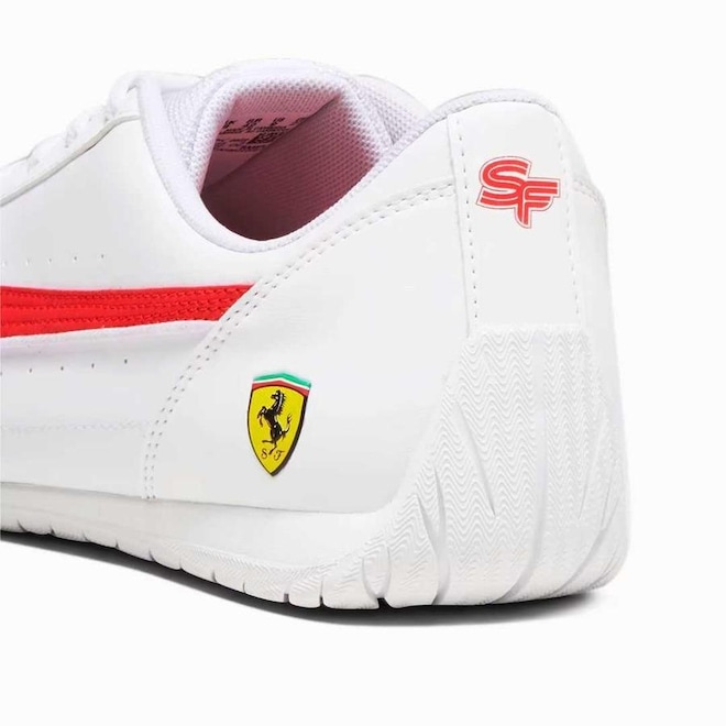 Volte à década de 1980 com a Ferrari Neo Cat inspirada nos tênis Bellof. Este tênis tem cabedal clean com detalhes perfurados na lateral e na parte superior e, no calcanhar, o icônico grafismo da Scuderia Ferrari.