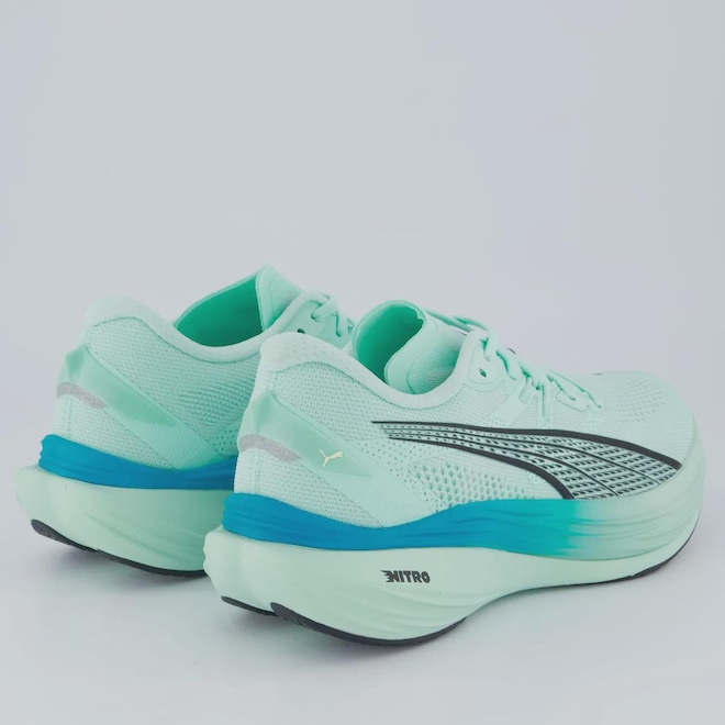 Tecnologias NITROFOAM™: Espuma avançada injetada com nitrogênio projetada para fornecer capacidade de resposta e amortecimento superiores em um conjunto leve PWRPLATE: Placa de fibra de carbono projetada para estabilizar a entressola enquanto maximiza a transferência de energia Composição cabedal (parte superior): Têxtil com partes em sintético Palmilha: EVA e removível; facilita o momento da higienização Forro: Material têxtil com acolchoamento reforçado Solado: EVA e borracha antiderrapante, colado Lingueta: Macia e acolchoada Cor predominante: Verde água Indicado para: Corrida Entressola: EVA leve Origem: Importada Gênero: Masculino Ajuste: Cadarço Altura da Sola: 5 cm Peso aproximado: 550g o par nº 40