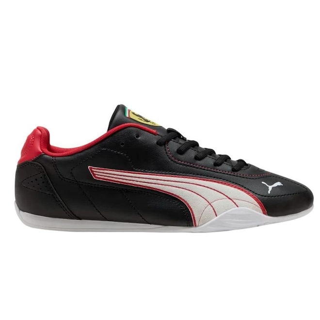 Detalhes: Logotipo Ferrari aplicado na lingueta e faixas laterais Puma