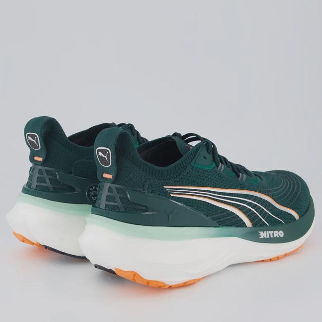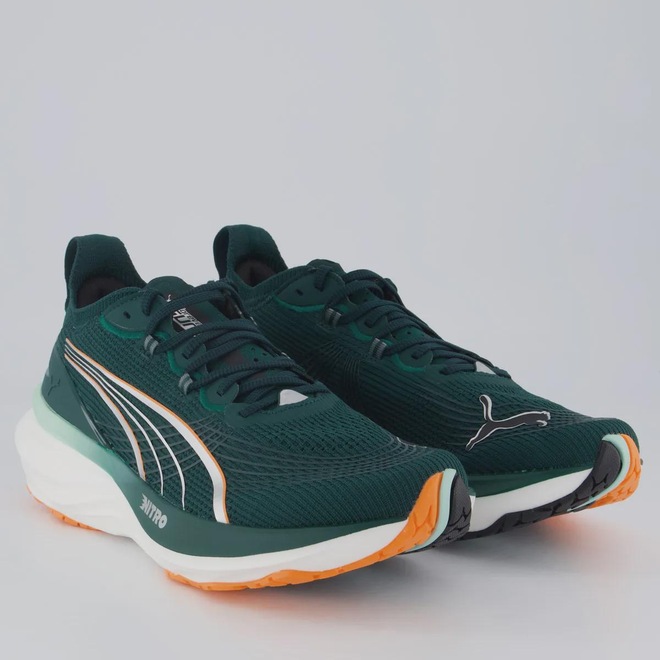 Tecnologias NITRO™: espuma avançada injetada com nitrogênio projetada para fornecer capacidade de resposta e amortecimento superiores em um conjunto leve PUMAGRIP: Composto de borracha de desempenho durável projetado para tração em todas as superfícies Running System: A tecnologia de amortecimento confortável da PUMA celebra a reinvenção de um momento e movimento únicos na cultura Composição cabedal (parte superior): Material Têxtil com parte em sintético Palmilha: EVA forrado e removível, facilita na higienização Forro: Material têxtil com acolchoamento reforçado Solado: Borracha antiderrapante, colado Lingueta: Macia e flexível Cor predominante: Verde Entressola: EVA macio Indicado para: Treino Altura da Sola: 5 cm Origem: Importada Gênero: Masculino Ajuste: Cadarço Peso aproximado: 650g o par nº 40