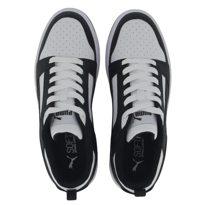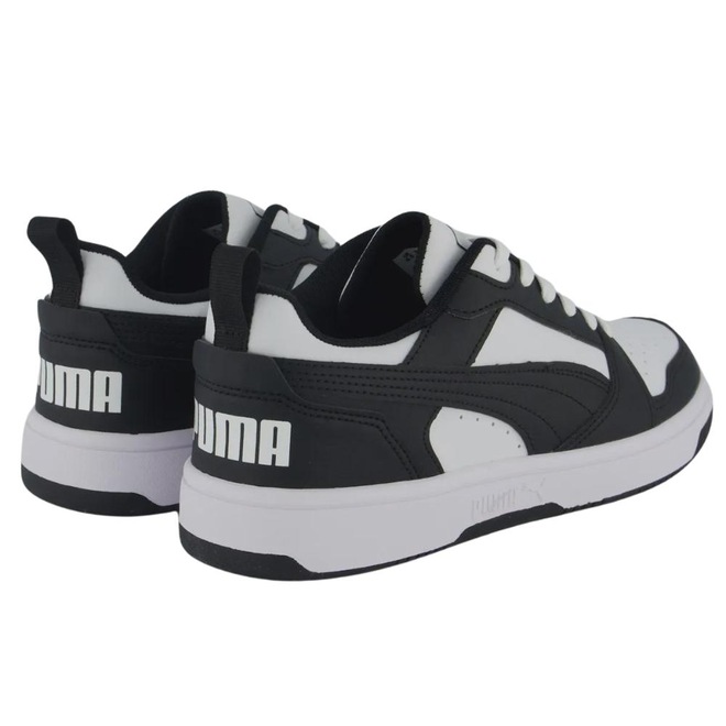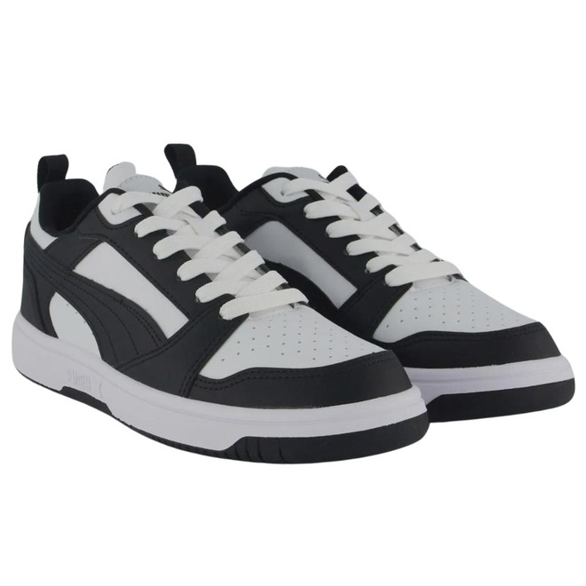 O Rebound Low inspirado no basquete está de volta para mudar o jogo. Com sua estrutura de tornozelo curto, cabedal de couro macio e logotipo PUMA mascado, além de estiloso, ele é adequado para uso diário dentro e fora de campo.