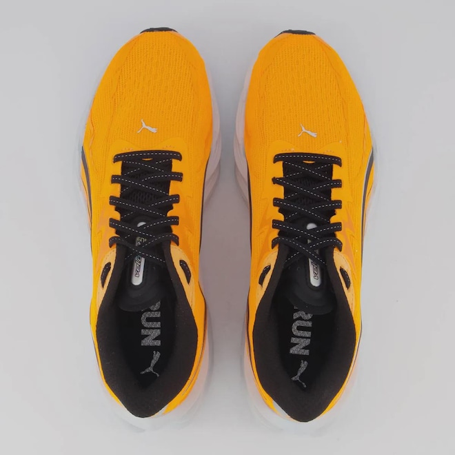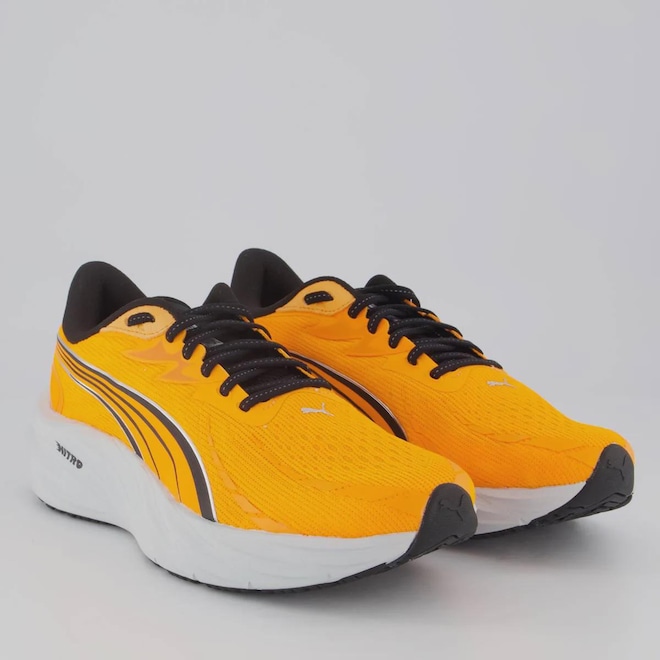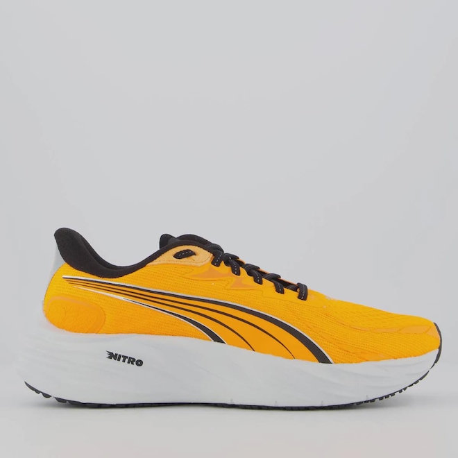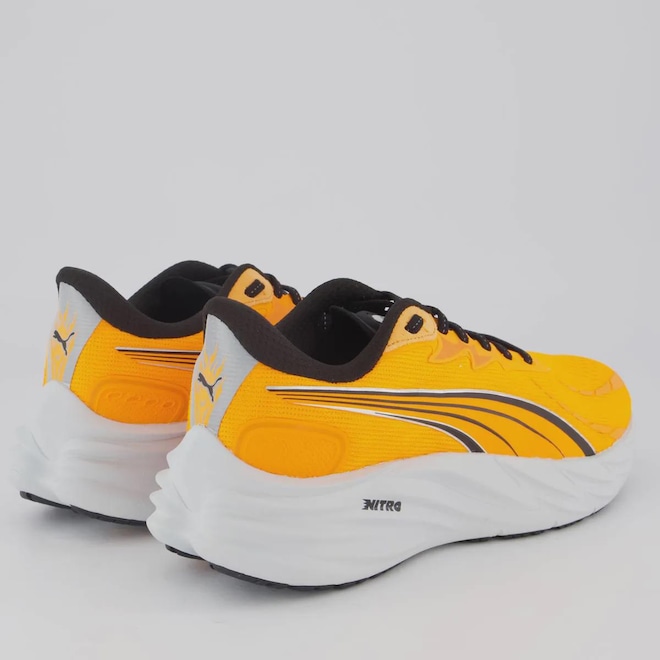 Tecnologias PUMAGRIP: A sola é feita de composto de borracha durável para tração em várias superfícies NITROFOAM™: Tecnologia inovadora de espuma com infusão de nitrogênio que fornece energia explosiva passo a passo. Composição cabedal (parte superior): Têxtil com partes em sintético Palmilha: EVA e removível; facilita o momento da higienização Forro: Material têxtil com acolchoamento reforçado Solado: EVA e borracha antiderrapante, colado Lingueta: Macia e acolchoada Cor predominante: Laranja Indicado para: Corrida Entressola: EVA leve Origem: Importada Gênero: Masculino Ajuste: Cadarço Altura da Sola: 5 cm Drop: 10mm Peso aproximado: 480g o par nº 40