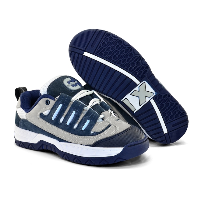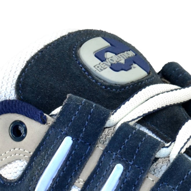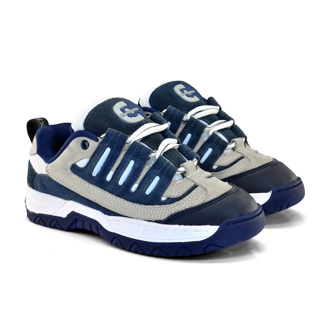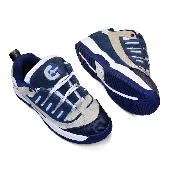 Cabedal: combinação de couros naturais (nobuck e suede premium) com tecido respirável. Possui fitas personalizadas, passadores emborrachados, etiquetas bordadas e acabamentos exclusivos.