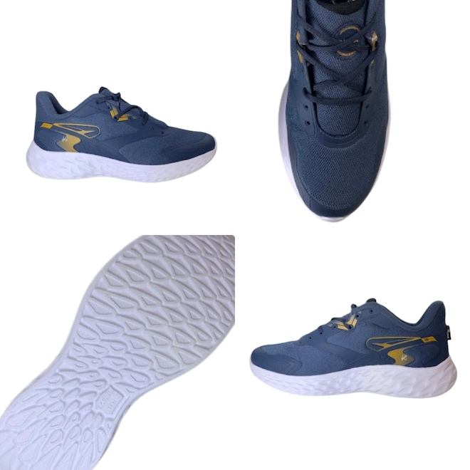 Cabedal: Material têxtil e sintético, favorecendo a respirabilidade e resistência