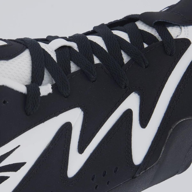 Composição cabedal (parte superior): Produzido em sintéticoPalmilha: EVA forrado e removível, facilita na higienizaçãoForro: Material têxtil com acolchoamento reforçadoSolado: Borracha antiderrapanteLingueta: Fina e flexívelCor predominante: PretaIndicado para: BasqueteOrigem: ImportadaGênero: MasculinoAjuste: CadarçoCano: AltoPeso aproximado: 860g o par nº 40