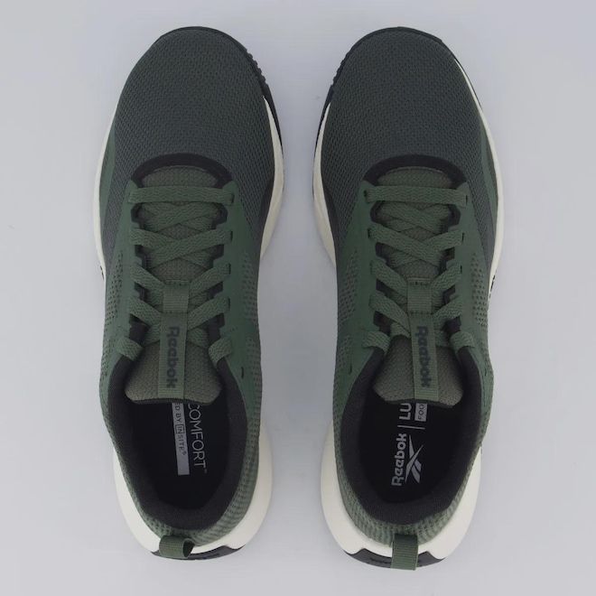 Tecnologia LuxComfort: Cabedal em malha ou mistura têxtil bastante respirável, projetado para oferecer leveza e ventilação. Composição cabedal (parte superior): Têxtil com partes em sintético Palmilha: EVA forrado e removível, facilita na higienização Forro: Material têxtil com acolchoamento reforçado Solado: Borracha antiderrapante Cor predominante: Verde Lingueta: Macia e flexível Indicado para: Treino Origem: Importada Gênero: Masculino Ajuste: Cadarço Peso aproximado: 600g o par nº 40