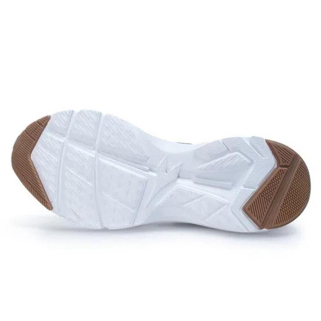 O seu cabedal tem um perfil de cano mais alto e é composto por tecido com tramas diferenciadas, formando grafismos por sua extensão e deixando o calçado ainda mais leve e flexível.