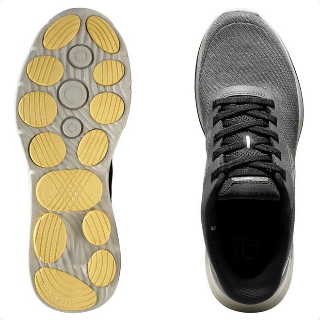 O cabedal em mesh esportivo com cadarços elásticos fixos oferece respirabilidade e ajuste confortável, enquanto o conjunto de amortecimento de última geração garante leveza e suporte durante toda a caminhada.