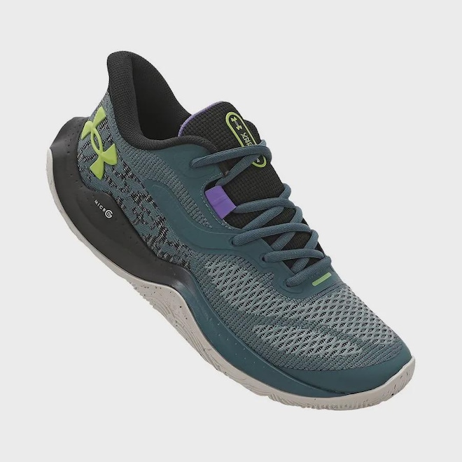 O UA Dime combina respirabilidade e suporte para uma performance ágil e dinâmica. Com entressola de espuma Micro G® e placa de TPU interna, ele garante estabilidade e resposta rápida em cada movimento. Confeccionado com a tecnologia Giro Inglês tricolor, proporcionando respirabilidade e um visual moderno com detalhes de cor sobrepostos.