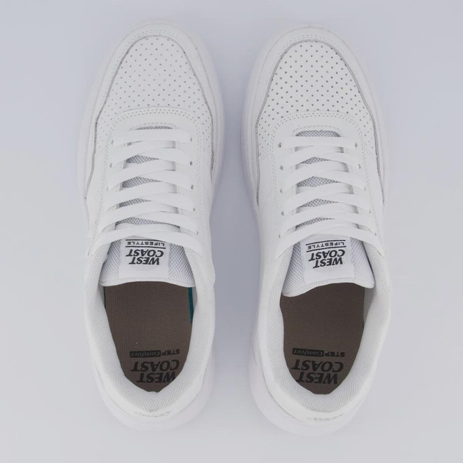 Composição cabedal (parte superior): Couro Forro: Material têxtil com acolchoamento reforçado Palmilha: Em EVA; forrada, moldada e removível Solado: Borracha antiderrapante Cor predominante: Branco Lingueta: Fina e macia Indicado para: Casual Gênero: Masculino Origem: Nacional Ajuste: Cadarço Peso aproximado: 750g o par n° 40