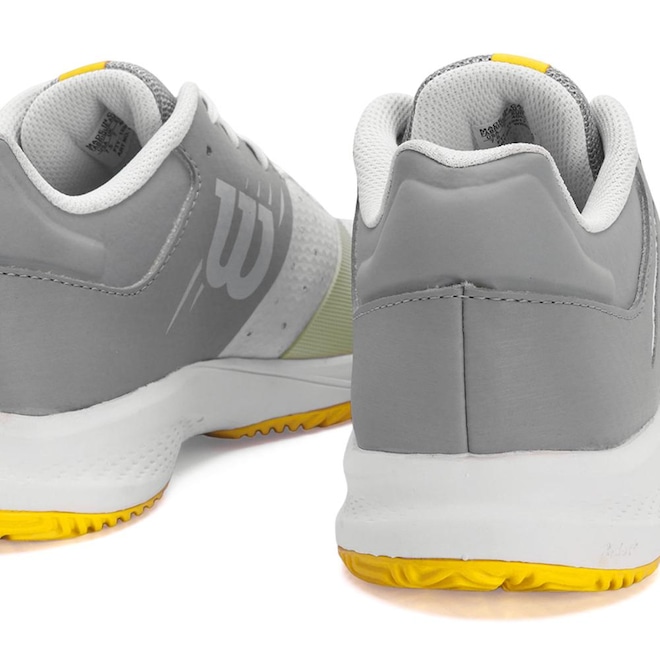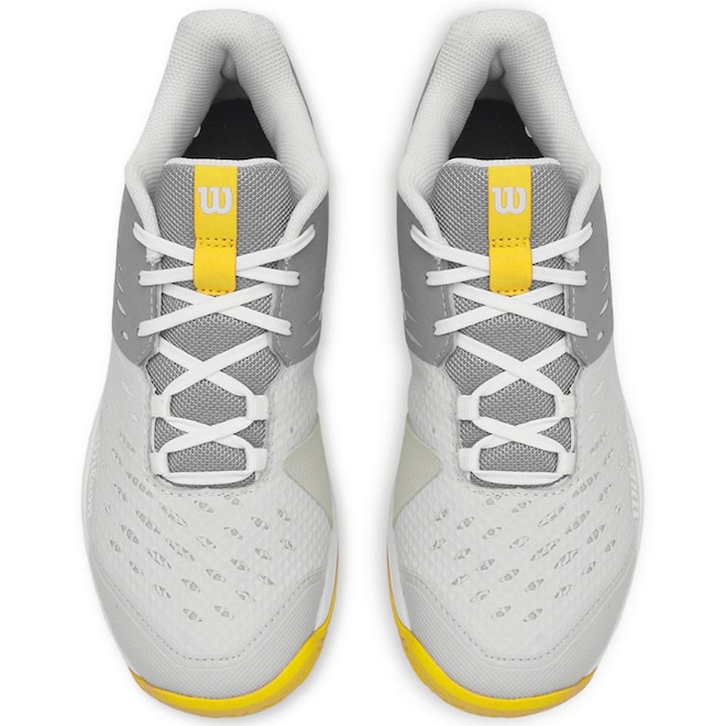 - Detalhamento: Projetado com cabedal (parte superior) em tecido de alta durabilidade e elasticidade, que proporciona maior sensação e conforto. Fechamento em cadarço, lingueta macia em mesh para maior conforto, marca Wilson na lingueta e na lateral externa. Reforço em borracha na lateral interna para garantir maior durabilidade. Palmilha removível com tecnologia Ortholite que controla a ventilação inibindo o odor. Furos frontais aumentam a respirabilidade, enquanto o design moderno e as cores marcantes completam o visual. O solado que não deixa marcas no piso e garante alta tração em qualquer tipo de quadra;
