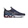O cabedal têxtil com tramas abertas que garantem circulação de ar, estruturado para obter estabilidade e firmeza aos pés.