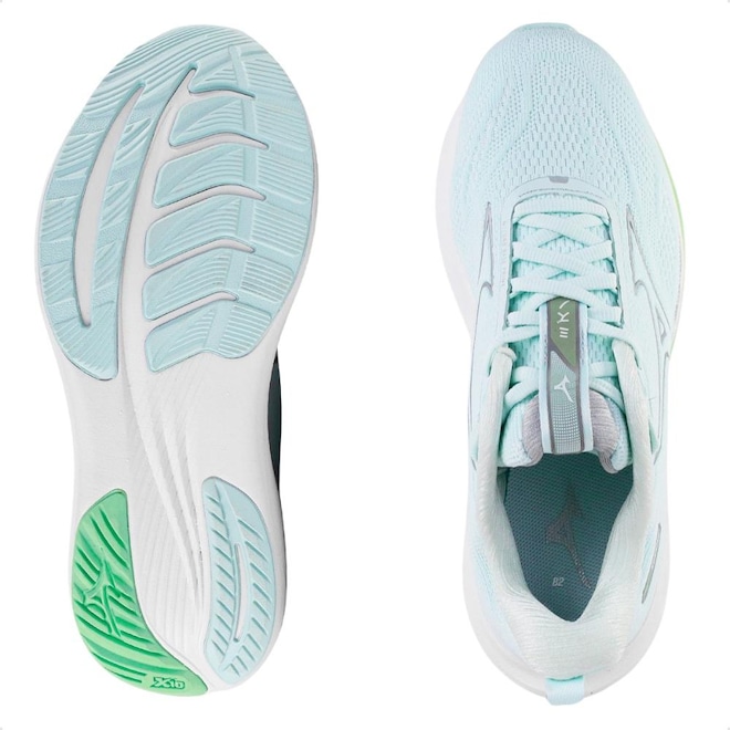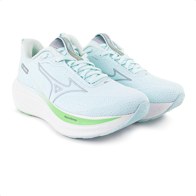 Entressola com tecnologia Mizuno Enerzy, composta por um material macio e responsivo, proporciona amortecimento superior e retorno de energia a cada passada.