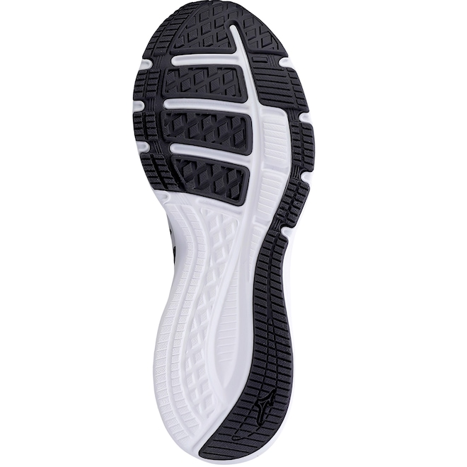 Solado em borracha com drop de 9 mm, garantindo aderência e durabilidade;
