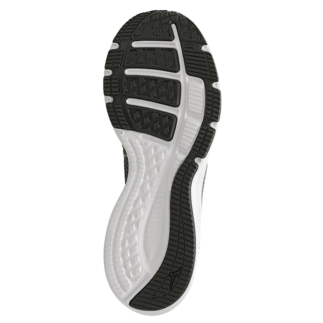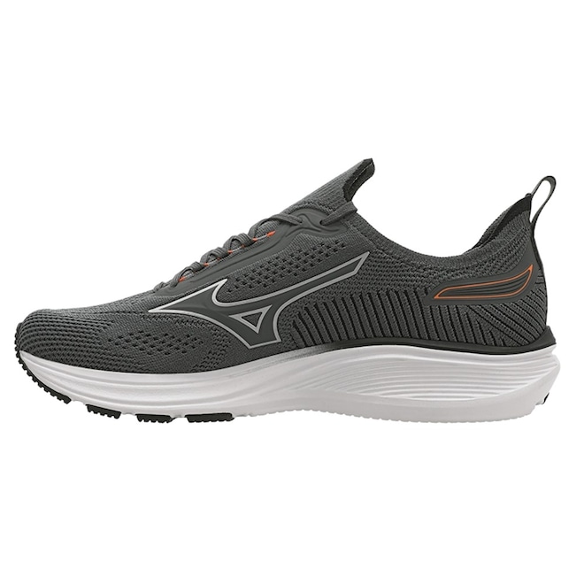 Cabedal em Tecido Knit (Ajuste Anatômico): O cabedal é confeccionado em tecido knit flexível e respirável. Este material de alta tecnologia garante um calce perfeito, adaptando-se ao formato do seu pé como uma meia, e oferece ventilação superior para manter a sensação de frescor.