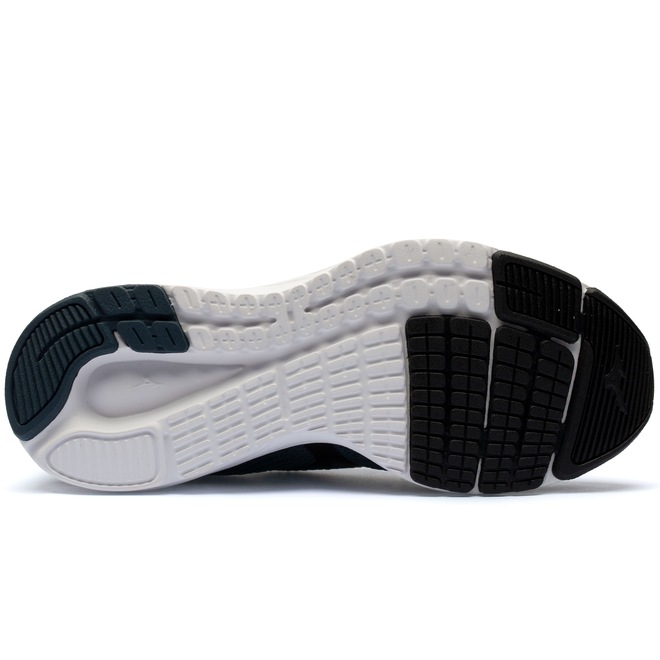 Possui cabedal sintético e em mesh, sua entressola é em EVA e seu solado conta com detalhes emborrachados.