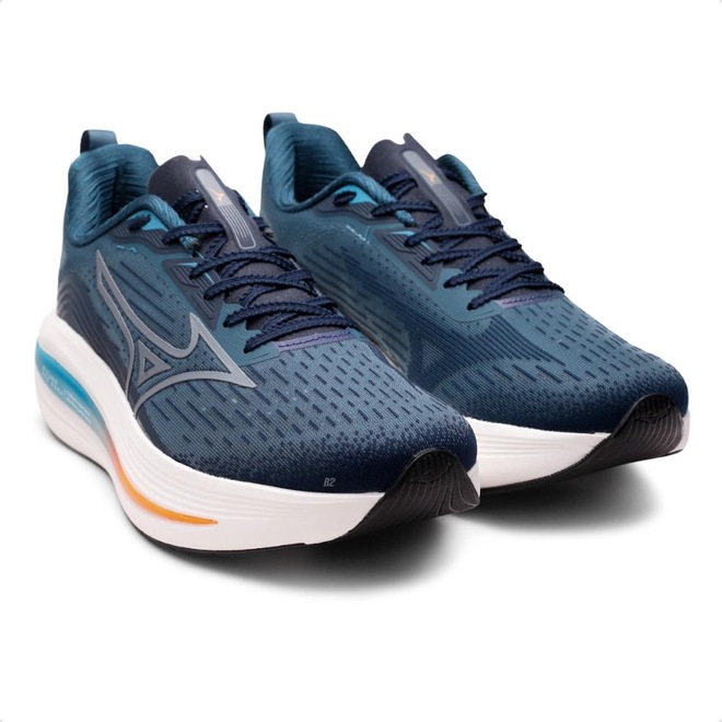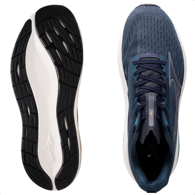 A principal inovação está na entressola equipada com Mizuno Enerzy NXT, um composto avançado infundido com nitrogênio, que potencializa a absorção de impacto e aumenta o retorno de energia a cada passo.