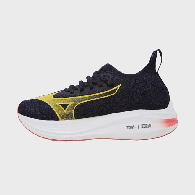 - Tecnologia na entressola: Mizuno Enerzy - Espuma feita a partir de algas que combina alto amortecimento, maciez e ótimo retorno de energia durante todo o seu treino.