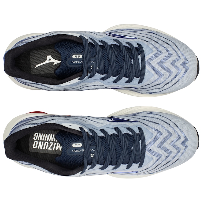 Com um drop de 15.5mm, o Mizuno Wave Creation 25 oferece uma plataforma estável e equilibrada, ideal para corredores que buscam um calçado que favoreça uma passada natural e eficiente.