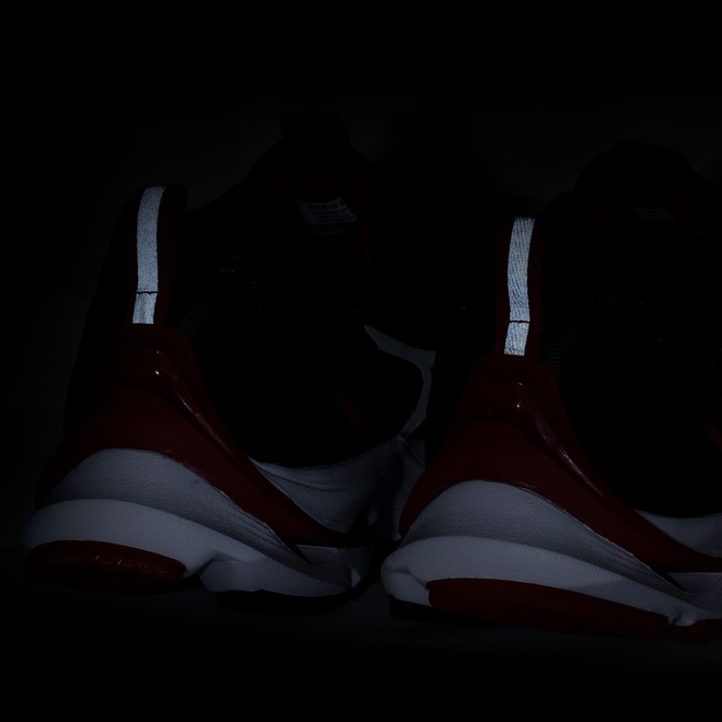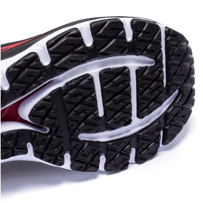 O cabedal ( parte superior do calçado) em sintético e mesh, com entressola em TPU e solado em borracha.