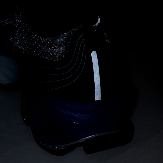 O cabedal (parte superior do calçado) estruturado em malha macia e leve, garante um ajuste mais rente aos pés e proporcionando maior respirabilidade.