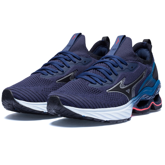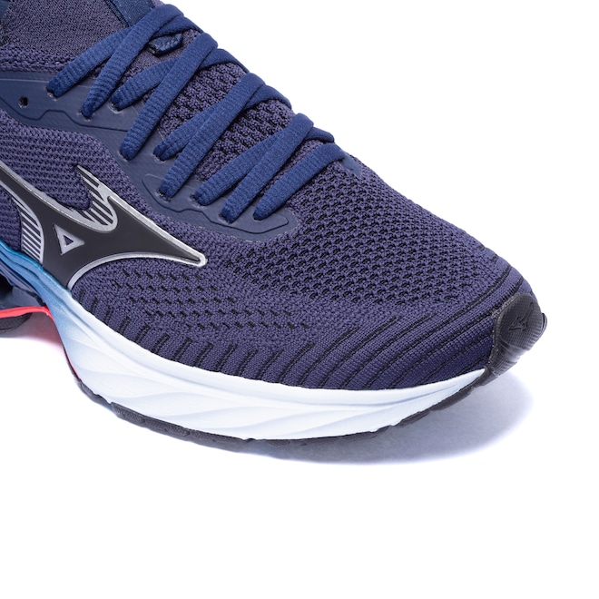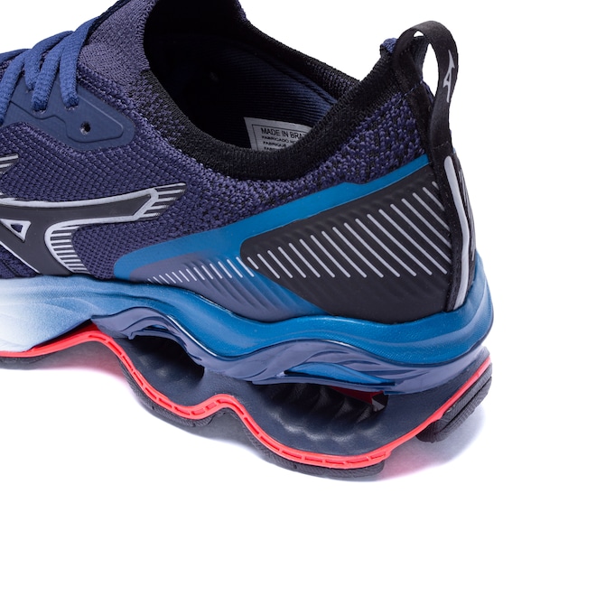 Mizuno Wave®: Nova geração da tecnologia Wave, que garante a efetividade inicial de amortecimento do tênis durante 500 km de uso, garantindo 100% da performance do sistema e proporcionando maior dissipação de impactos.