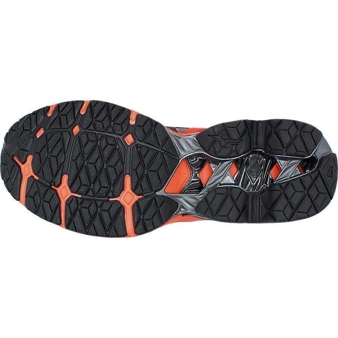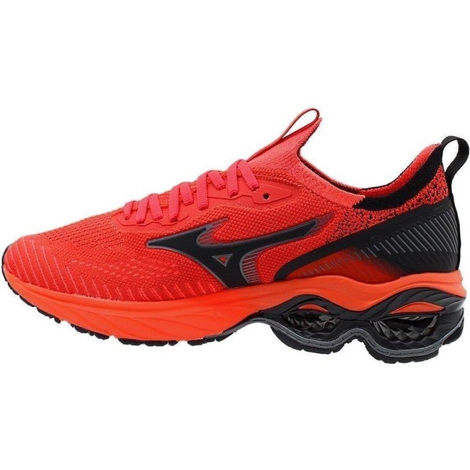 Mizuno Wave®: Nova geração da tecnologia Wave, que garante a efetividade inicial de amortecimento do tênis durante 500 km de uso, garantindo 100% da performance do sistema e proporcionando maior dissipação de impactos.
