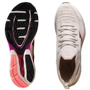Entressola com tecnologia Mizuno Wave, composta por uma placa ondulada que se estende do calcanhar ao mediopé, proporciona amortecimento responsivo e estabilidade durante a corrida.