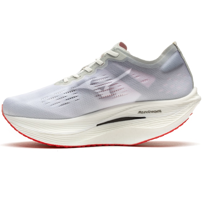 O Mizuno Enerzy proporciona um amortecimento excepcionalmente leve e macio, com um retorno de energia sem igual. Isso não só aumenta o conforto, mas também impulsiona sua velocidade e resistência, permitindo que você aproveite ao máximo cada passo.