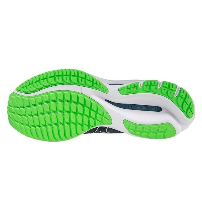 O design do solado com ranhura vertical possibilita uma melhor transição da passada, somado a tecnologia Mizuno Wave na região do calcanhar, fornece mais estabilidade para o corredor.