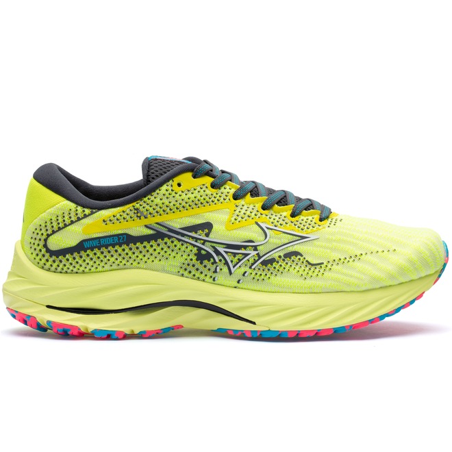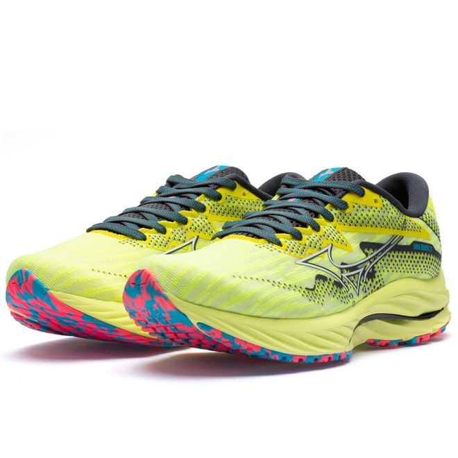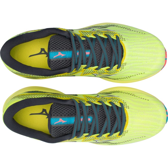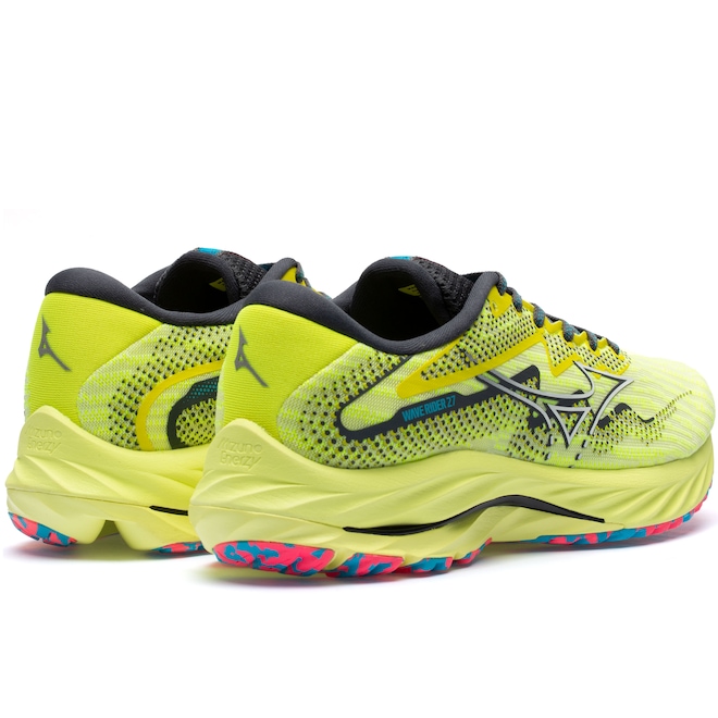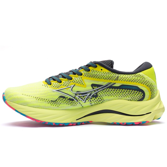 Já a entressola em EVA apresenta as tecnologias Mizuno Wave: Nova geração da tecnologia Wave, que garante a efetividade inicial de amortecimento do tênis durante 500 km de uso, garantindo 100% da performance do sistema e proporcionando maior dissipação de impactos.