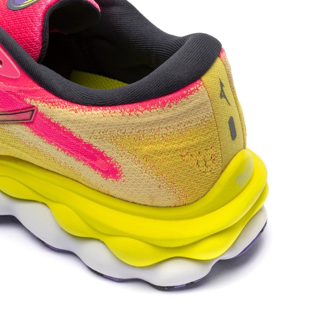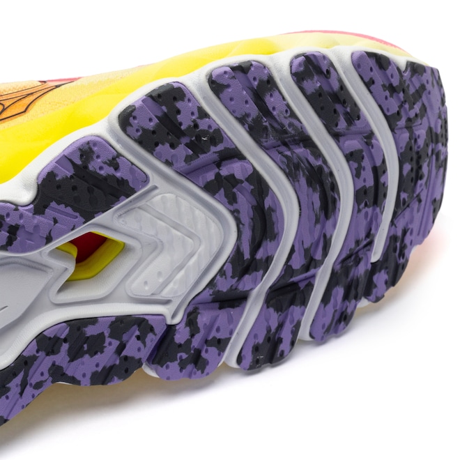 Mizuno Wave®: Nova geração da tecnologia Wave, que garante a efetividade inicial de amortecimento do tênis durante 500 km de uso, garantindo 100% da performance do sistema e proporcionando maior dissipação de impactos.