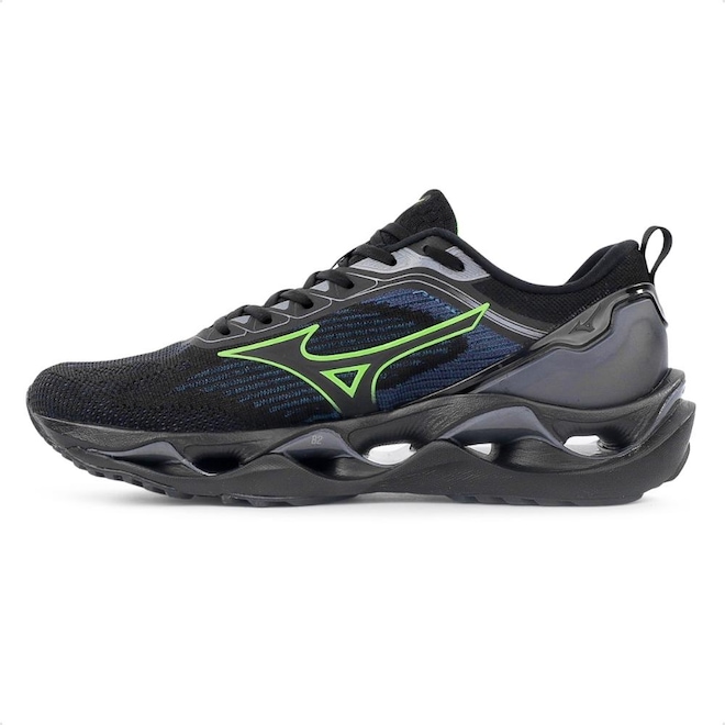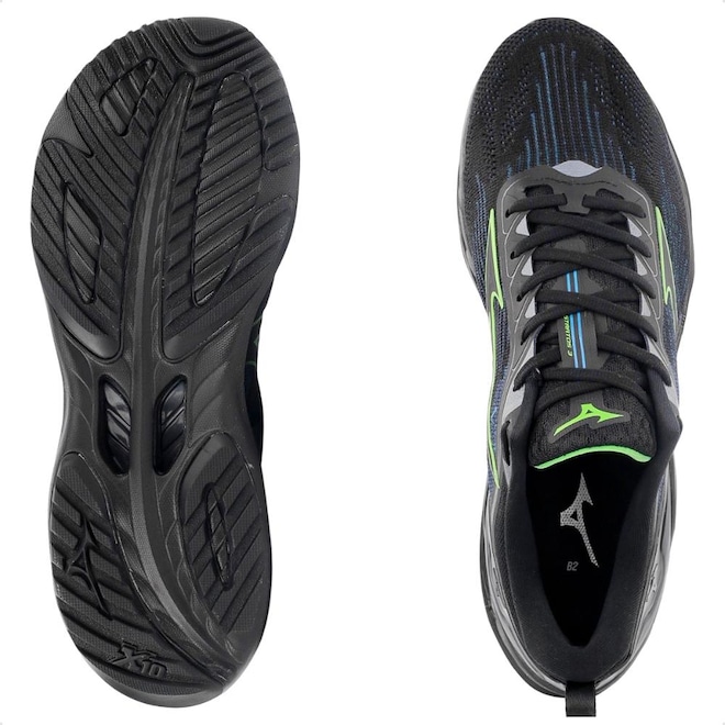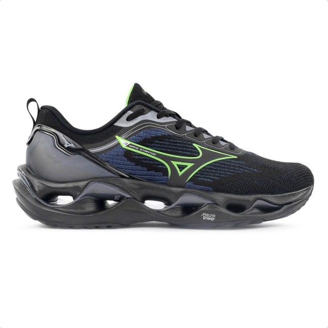 Tecnologia Mizuno Wave, placa que garante estabilidade e absorção de impacto, distribuindo a energia da passada de forma eficiente.