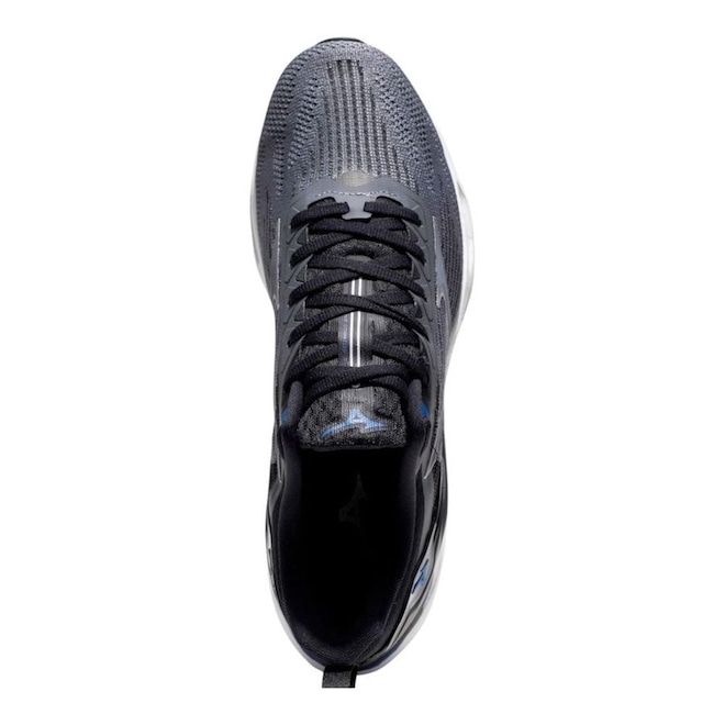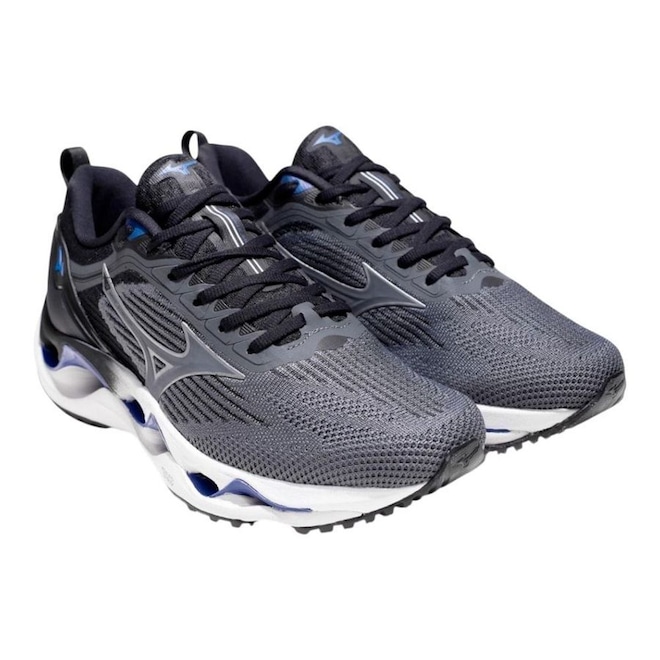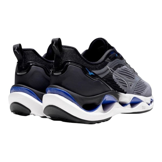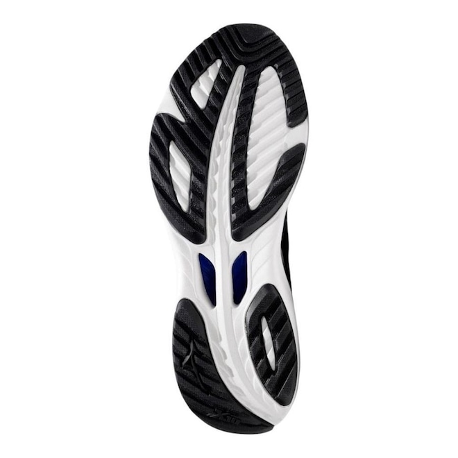 Mizuno Wave: Estrutura em formato de onda que estabiliza a passada e distribui impactos, garantindo amortecimento consistente.