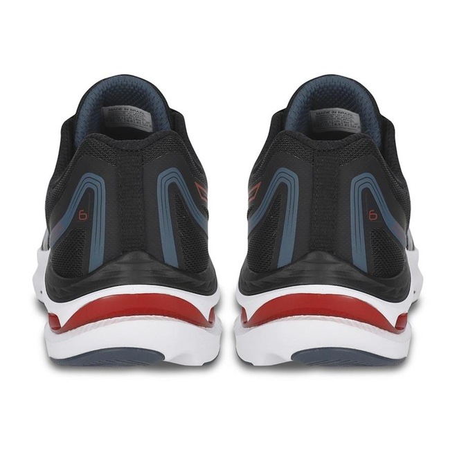Composição: Parte superior (cabedal): em Tecido Airmesh. Solado: tecnologia X10, um composto de Borracha e Carbono.