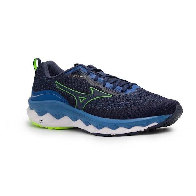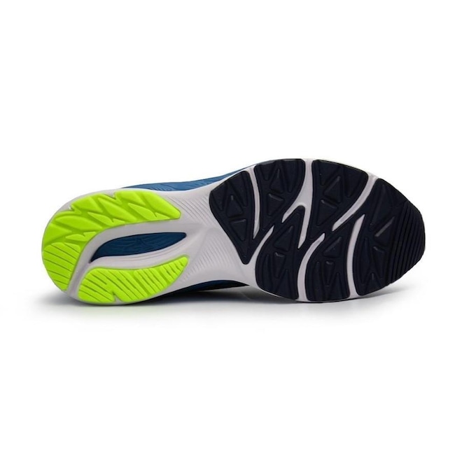 Possui Mizuno Wave®, tecnologia que garante a efetividade inicial de amortecimento do tênis durante 500 km de uso, garantindo 100% da performance do sistema e proporcionando maior dissipação de impactos.