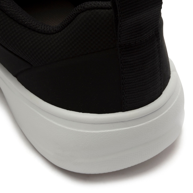 O contraforte com suporte acolchoado melhora o ajuste e reforça a proteção na região do calcanhar, enquanto a palmilha forrada oferece toque suave e macio durante todo o uso.