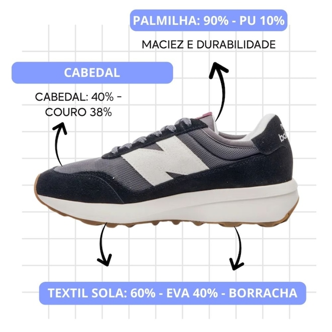 Cabedal: Feito em material respirável que mantém seus pés frescos e confortáveis durante todo o dia