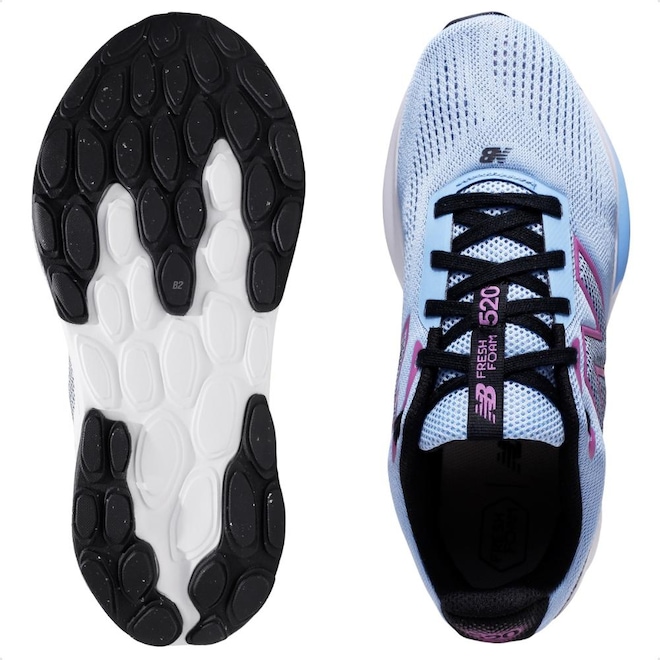 Tecnologia Fresh Foam de amortecimento leve e responsiva, oferecendo conforto, estabilidade e retorno de energia. Seu design geométrico melhora a adaptação aos movimentos naturais do pé.