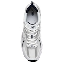 O tênis branco é produzido em mesh. A peça de modelo daddy sneaker* possui bico arredondado, cano baixo, cabedal em mesh, recortes, logo da marca aplicado na lateral, tag da marca aplicada na lingueta, palmilha macia com o logo da marca estampado, entressola em EVA com recortes em relevo, solado emborrachado e fechamento superior por amarração.