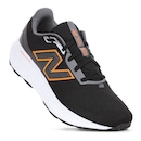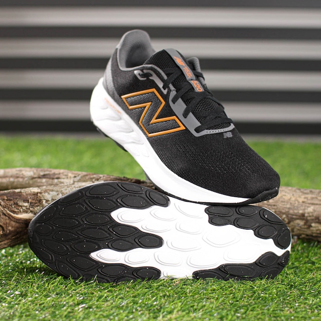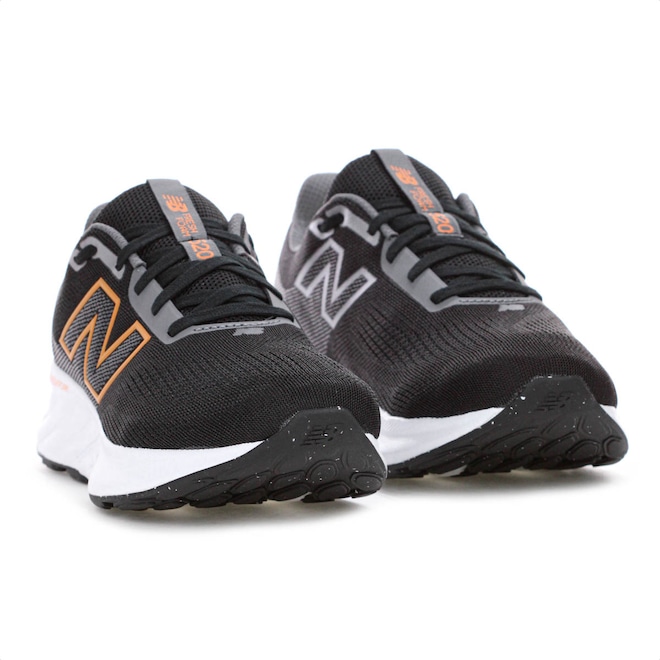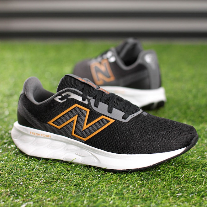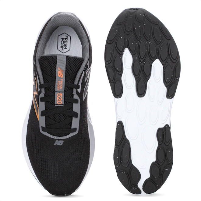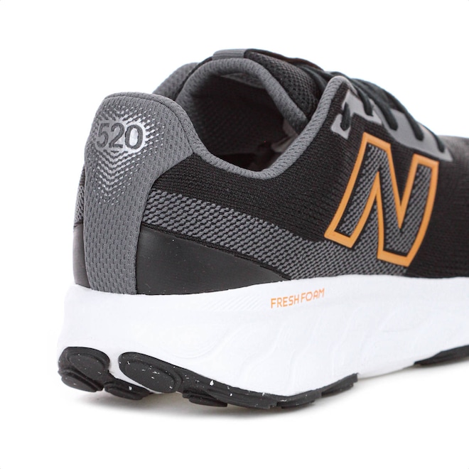 Conforto e estabilidade para seus treinos diários! Tênis New Balance Fresh Foam 520 V9 Preto Cinza e Laranja - Masculino Ficha Técnica: Marca: New Balance Cor: Preto com detalhes em cinza e laranja Cabedal: Mesh respirável com estrutura em TPU que proporciona suporte e ventilação ideal Gênero: Masculino Palmilha: EVA forrado e removível para maior conforto e facilidade na higienização Sola: Borracha antiderrapante com design que favorece a tração Fechamento: Cadarço Amortecimento: Tecnologia Fresh Foam para transições suaves e leveza nas passadas Estabilidade: Boa, com estrutura firme e entressola adaptável Lingueta: Acolchoada e flexível Tecnologias: Fresh Foam - amortecimento responsivo com retorno de energia Drop: 10 mm Entressola: Espuma Fresh Foam com design geométrico que se adapta ao movimento natural do pé Indicação: Ideal para atletas iniciantes ou intermediárias que buscam conforto em corridas ou treinos diários Detalhes: Logotipo da marca nas laterais, acabamento moderno, com visual elegante e discreto Descubra o equilíbrio ideal entre suavidade e estabilidade com o New Balance Fresh Foam 520 V9. Porque investir: Com tecnologia Fresh Foam, ele oferece uma passada leve e responsiva, ideal para quem busca performance com conforto. O cabedal respirável em mesh garante ventilação, enquanto a entressola adaptável se molda ao movimento do pé. Seu visual moderno em preto com cinza combina com qualquer estilo, dentro ou fora das pistas! Conteúdo da embalagem: 1 par de Tênis New Balance Fresh Foam 520 V9 Preto Cinza e Laranja - Masculino
