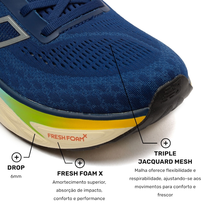 - Sobre o produto - Aprimorando o equilíbrio entre performance e conforto, o New Balance Fresh Foam X 1080 V14 é a escolha perfeita para quem busca versatilidade. - Com design renovado, ele é ideal tanto para corridas quanto para uso casual, atendendo desde corredores iniciantes até atletas avançados. - O cabedal em Engineered Mesh garante respirabilidade e flexibilidade, com ventilação estratégica para maior frescor durante os treinos. - A entressola Fresh Foam X evolui para proporcionar mais amortecimento e estabilidade, absorvendo impactos com eficiência e oferecendo uma sensação única de maciez. - Com drop de 6 mm, este modelo é indicado para treinos diários, caminhadas, rodagens e competições. - Garanta já o seu New Balance Fresh Foam X 1080 V14 e eleve seu desempenho com conforto e estilo! - ref: 990517