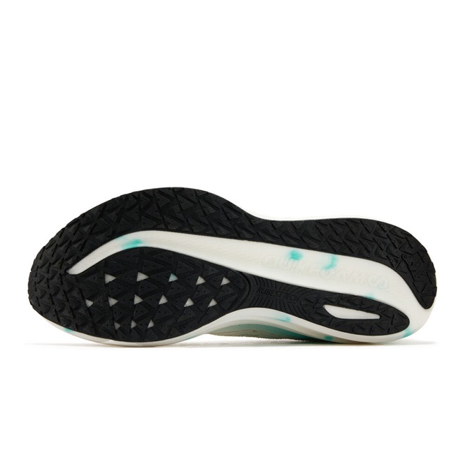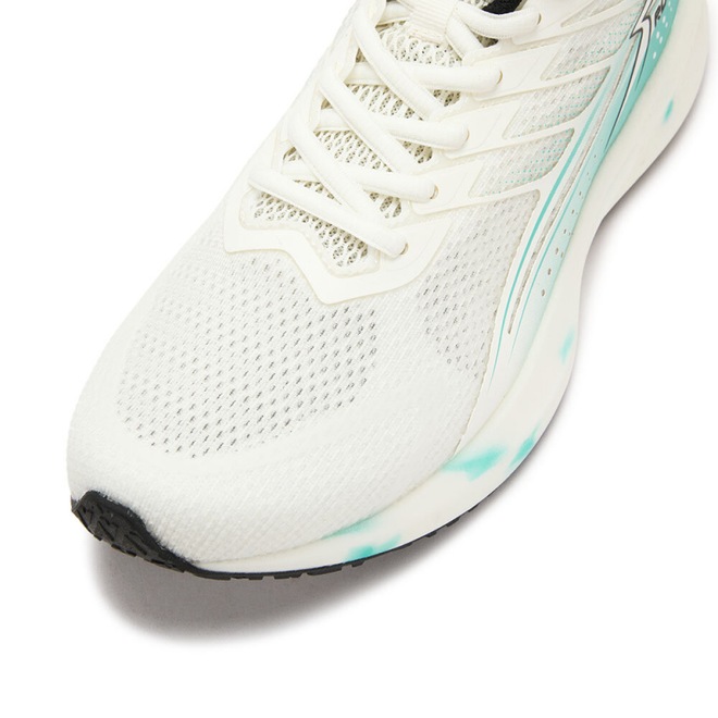 Geometria de Balanço (Rocker): O design curvado da entressola, conhecido como geometria de balanço, promove uma transicao de pisada suave e eficiente. Ela ajuda a impulsionar o corredor para a frente, diminuindo o esforco e tornando a corrida mais fluida, mesmo com a alta camada de espuma.
