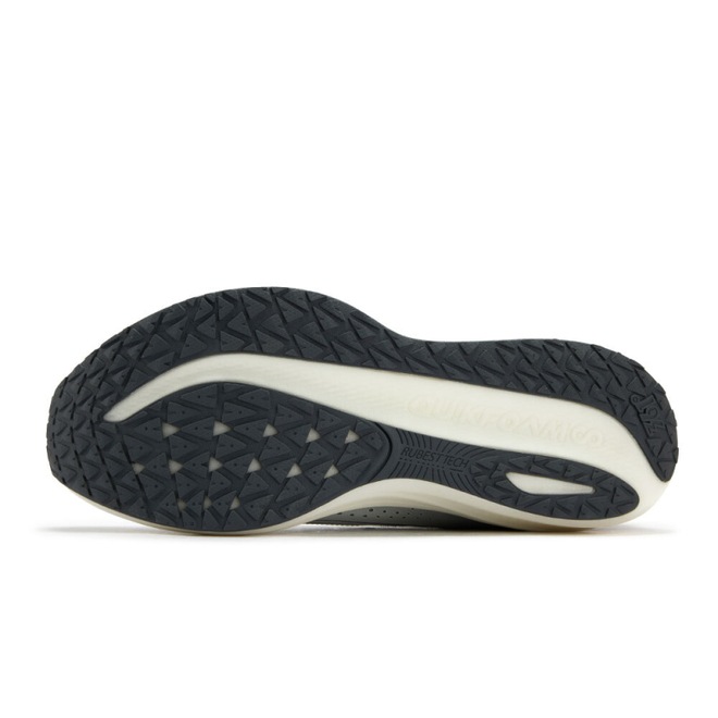 Geometria de Balanço (Rocker): O design curvado da entressola, conhecido como geometria de balanço, promove uma transicao de pisada suave e eficiente. Ela ajuda a impulsionar o corredor para a frente, diminuindo o esforco e tornando a corrida mais fluida, mesmo com a alta camada de espuma.
