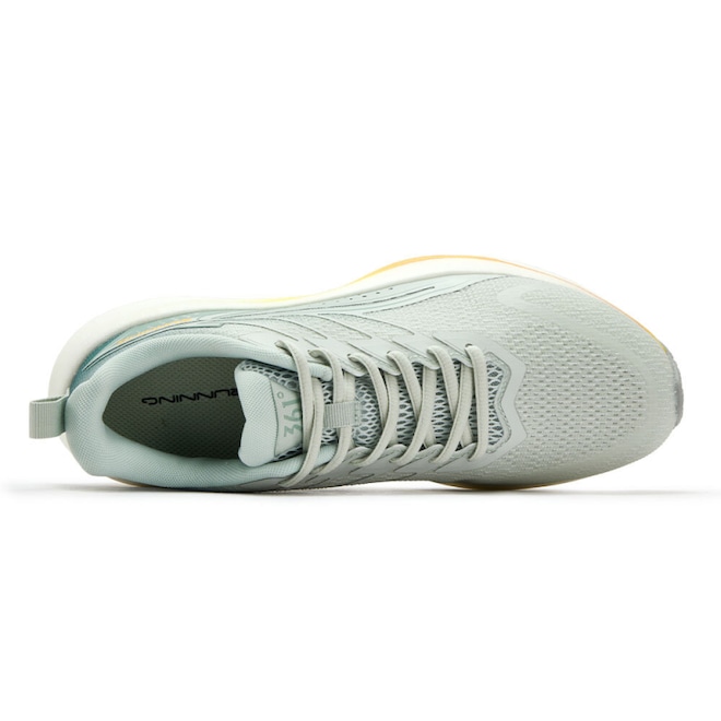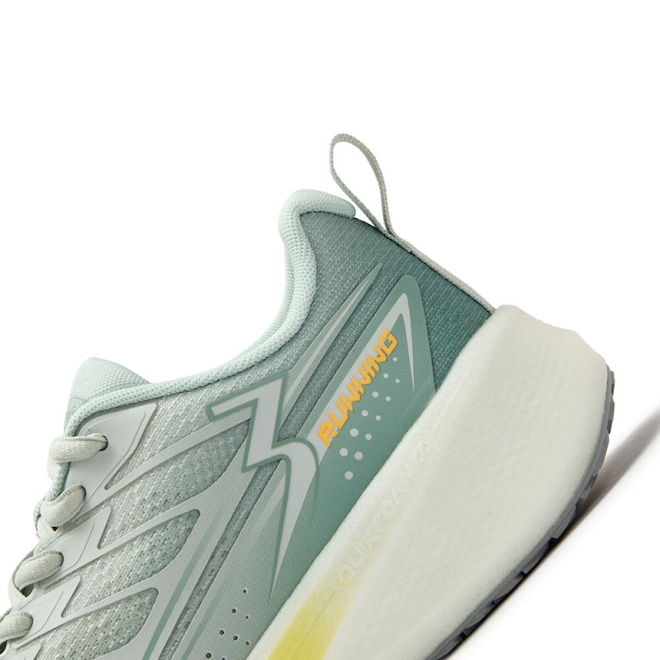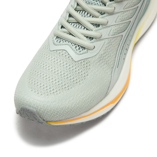 Geometria de Balanço (Rocker): O design curvado da entressola, conhecido como geometria de balanço, promove uma transicao de pisada suave e eficiente. Ela ajuda a impulsionar o corredor para a frente, diminuindo o esforco e tornando a corrida mais fluida, mesmo com a alta camada de espuma.