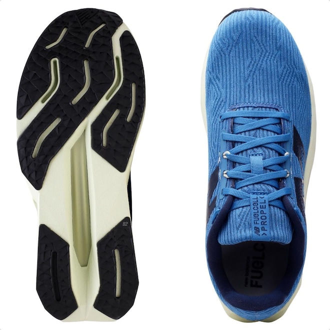 Placa de TPU na entressola, combinada com a espuma FuelCell, proporciona uma sensação de propulsão e dinamismo, impulsionando o corredor para a frente.Cabedal: 86% - Textil 14% - Sintétic Forro/Palmilha: 100% - Textil Sola: 58% - Borracha 34% - EVA 8% - TPU