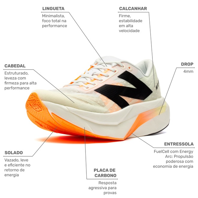 Supere seus limites com o Tênis New Balance FuelCell SuperComp Elite v4, uma verdadeira obra-prima para corredores que buscam desempenho, leveza e máxima eficiência.
