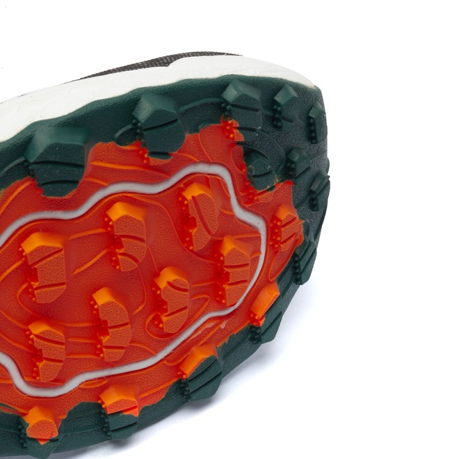 Seu cabedal (parte superior do tênis) é diferenciado em malha leve e respirável, acrescido pela tecnologia Toe Protect para reforço e durabilidade contra os detritos e elementos externos.